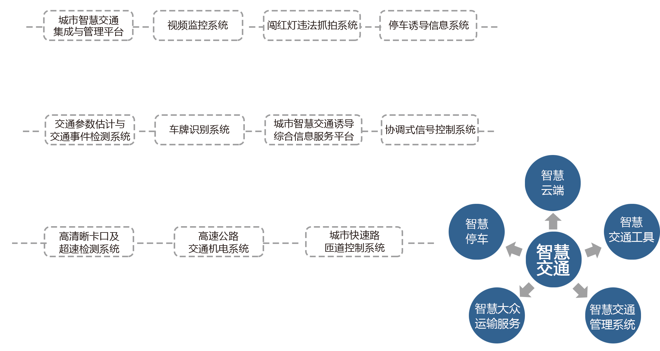 与清华大学和国外知名企业联合,根据城市的特点和实际情况,从宏观到微观,定量、定性的诊断当前城市交通存在的问题,综合运用当代计算机、信号控制、通信、数字视频等高新技术,将交通视频监控系统、自适应交通信号控制系统、交通流信息采集系统、122接警系统、静态交通管理系统、交通管理信息系统、交通诱导与交通信息发布系统等进行了优化整合,使各系统能够相互协同,融合为一个科学合理的智慧交通信息系统。