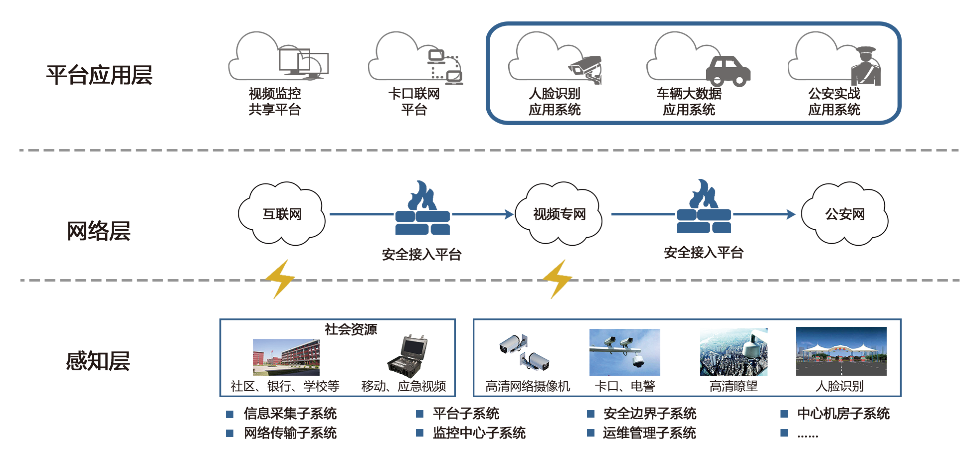 采用全高清视频采集系统,利用先进的视频编解码技术、网络传输技术、智能视频分析技术,建立全方位、立体化的城市安全防御体系,使视频监控点联成片、形成面、织成网,把技防系统的“天眼”联结成“天网”,实现信息高度共享和视频监控资源的网络化管理与应用,提高政府应对突发事件和社会管理的能力,夯实城市社会治安防控基础体系。